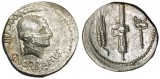 L. JULIUS BURSIO, (c.85 B.C.), silver denarius, Rome mint, (3.682 and 3.486 grams), obv. Genius (or Apollo Vejovis) bust laureate to right, trident and symbol ...