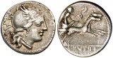 L. RUTILIUS FLACCUS, (c.77 B.C.), silver denarius, Rome mint, (3.64 grams), obv. Roma helmeted head to right, FLAC behind, rev. Victory in biga to right, ...