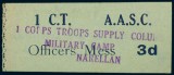 AUSTRALIA, 1 C.T. A.A.S.C. (Australian Army Service Corps), Officers Mess, chit for threepence, overstamped "1 Corps Troops Supply Column / Military Camp / Narellan". A ...