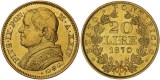 VATICAN, Pius IX, twenty lire, 1870 R XXIV, (KM.1382.2). Extremely fine.