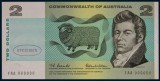 TWO DOLLARS, Coombs/Wilson (1966) FAA 000000 type one specimen issue (R.SP02) oval specimen overprint. Virtually uncirculated and rare, as taken from presentation book.