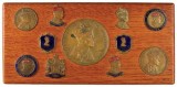 EDWARD VIII, royalty box in timber with obverses of a variety of coronation commemorative pieces in bronze, gilt and enamel affixed to the lid. Unusual ...