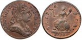 GEORGE III, first issue copper farthing, 1774, (S.3775). Nearly full mint red, about uncirculated, rare as such, with Spink ticket.