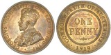 GEORGE V, 1913. Brown and red, nearly uncirculated and rare in this condition.