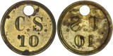 MOZAMBIQUE, Tete, Correia Da Silva, store checks for 20 and 10 reis in pressed brass (bracteate) (illustrated), (both holed), (Theron p.73-74 M2) undated but circa ...