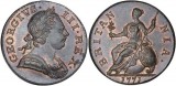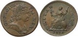 GEORGE III, first issue, copper farthing, 1773 (S.3775). Even brown patina with hints of red, nearly uncirculated.