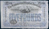 COMMERCIAL BANK OF AUSTRALIA, specimen five pounds, Melbourne, 18-, No. A 60001 - No. A 70000 (MVR type 1), with Chinese text on each side ...