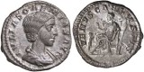 JULIA PAULA, first wife of Elagabalus, (A.D. 220), silver denarius, (3.20 grams), obv. draped bust of Julia Paula to right, around IVLIA PAVLA AVG, rev. ...