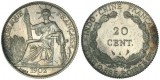 FRENCH INDO CHINA, silver piastre, 1904A, another 1905A (KM5a.1); silver twenty cents, 1902 (KM.10); silver ten cents, 1902 (KM.9). Nearly uncirculated - uncirculated. (4)