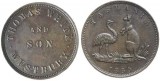WHITTY & BROWN, kangaroo and emu penny, undated (cf.A.571) probable cast by Whitty & Brown. Die axis upset thirty degrees to the right, fine.