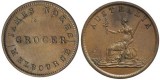 PEEK & CAMPBELL - SYDNEY TEA STORES, Sydney penny, 1852 (A.426) by J.C. Thornthwaite, the first token struck in Australia. Die axis upset 180 degrees, ...