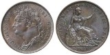 GEORGE IV, first type, farthing, 1821 (S.3822). Attractive even brown, with raised leaf ribs, about as struck, nearly uncirculated.