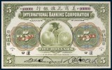 CHINA, International Banking Corporation, specimen note for five dollars, Hankow, 1st July 1918, No 000000, with SPECIMEN printed in red at angle on left and ...