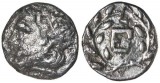 PELOPONNESOS, Argolis, Epidauros, (late 250's B.C.), silver hemidrachm, (2.19 grams), obv. laureate head of Asklepios to left, **Q* behind head, rev. **EP* monogram within wreath, ...