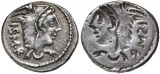 C. FONTEIUS, (114-113 B.C.), silver denarius, (3.830 grams), obv. Janus head, H to left, * to right, rev. galley with pilot and three rowers, C.FONT ...