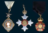 GROUP OF NINE: The Most Honourable Order of the Bath, Companion (CB) neck badge; The Royal Victorian Order, Member (MVO) breast badge; The Most Excellent ...