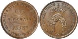 DEASE, E.F., Launceston penny, undated (A.99). Die axis upset 180 degrees, mostly subdued proof-like mint bloom, planchet flaw in reverse field, otherwise nearly FDC and ...