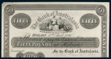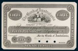 THE BANK OF AUSTRALASIA, proof fifty pounds, uniface, black and white on white paper, Adelaide, 17th Octr 1899, 'To this Jan 26th/00' added in pencil ...