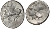ACARNANIA, Leucas (Colony of Corinth), (320-250 B.C.), silver stater, (8.40 g), obv. Pegasos with pointed wing flying to left, **L* below, rev. head of Athena ...