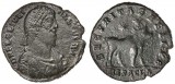 JULIAN II, (A.D. 360-363), AE 3, Constantinople mint, issued 360-3, (3.09 g), obv. helmeted and cuirassed bust of Julian to left, holding spear and shield, ...