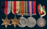 GROUP OF SIX: 1939-45 Star; Africa Star, - clasp - 1st Army; Italy Star; Defence Medal 1939-45; War Medal 1939-45 with MID; Efficiency Medal (GVIR ...