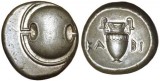 BOIOTIA, Thebes, (425-400 B.C.), silver stater, (12.12 g), obv. Boiotian shield, rev. amphora in incuse circle, with ivy leaf hanging outwards from left handle, across ...