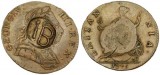 GEORGE III, silver sixpence, 1787, without semee of hearts (S.3748, ESC1626); halfpenny, 1775 (S.3774) with IB counterstamp. First coin with graffiti in obverse field, otherwise ...
