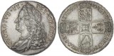 GEORGE I, first bust, shilling, 1715, roses and plumes (S.3645); shilling, 1723 SSC (S.3647); shillings 1724 and 1725, roses and plumes (S.3649) (2). Second nearly ...