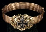 GERMANY, WWI, trench art bracelet, in copper with gold (15ct, 5g) and miniature silver blackened Iron Cross 1914. Very fine.