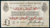 GREAT BRITAIN, treasury note, one pound, John Bradbury, P/53 No 89339 with 1915 Dardenelles overprint in Arabic in red ink (P.349b). Minor 'pin holes', otherwise ...