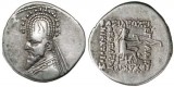 PARTHIA, Vologases II, (c.A.D. 77-80), silver drachm, Ecbatana mint, (3.66 g), obv. short bearded bust to left, wearing tiara, without motif of a horn and ...