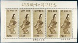 JAPAN, 1948 Philatelic Week 5 yen, "Woman looking back" perf. miniature sheet of 5 stamps (2, different shades of brown, one illustrated) (SG MS514 rare) ...