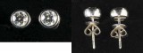 DIAMOND EARRINGS, each approx 30 points, inset in circular frame of 18ct white gold (tot wt 2.89g). Very fine.