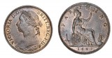 QUEEN VICTORIA, bronze farthings, 1860, 1861 (3), 1862, 1863 (2), 1864 plain 4 (2), 1865, 1866 wide and narrow 66, 1867, 1868, 1869, 1872, 1873 ...