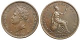 GEORGE IV, copper penny, 1827 (S.3823). Nearly very fine and rare.