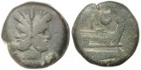 REPUBLIC, Anonymous (semilibral) Series, (c.217-215 B.C.), Rome mint, AE uncia, (7.00 g), obv. helmeted head of Roma to right, pellet behind, rev. prow to right, ...