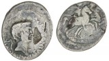 OCTAVIAN, (42 B.C.), silver denarius (3.37 g), military mint travelling with Octavian in Greece, obv. helmeted and draped bust of Mars to right, spear behind, ...