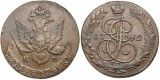 RUSSIA, Catherine II (the Great), copper five kopecks 1782KM, (KM.C59.5); Siberia, Catherine II (the Great), copper five kopecks, 1776 KM (KM.C5). Both very fine or ...