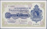 FALKLAND ISLANDS, The Government of the Falkland Islands, Elizabeth II, specimen one pound, 2nd January 1967, E 00000, imprint of Thos de la Rue & ...