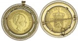 NETHERLANDS, Wilhelmina, ten gulden, 1925, (KM.162), in 14ct gold clip-ring frame with decorative border, the frame fitted with brooch mount and also suspension loop, for ...
