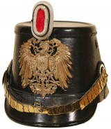IMPERIAL GERMANY, Prussian East Asian Expeditionary Corps Officers model 1860 shako, a good representative composite parts example, original leather body and peaks repainted in a ...