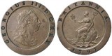 GEORGE III, second issue, copper cartwheel twopence, 1797 (S.3776). Die curl obverse rim 1-3 at 9 o'clock, tiny area of lacquer on reverse rim, extremely ...