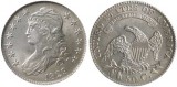 USA, CAPPED BUST HALF DOLLAR, 1837, milled or reeded edge, 50 cents. Peripheral toning, good extremely fine.