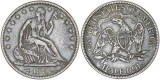 USA, LIBERTY SEATED HALF DOLLAR, variety 1 resumed, 1856. Lightly toned, nearly extremely fine.