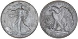 USA, SILVER COINS, half dollars, walking Liberty (13), Washington (3), Kennedy, 1967 (3), 1968D, 1969D; quarter dollars, standing Liberty (3, two with date worn away), ...