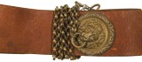 NSW MILITARY FORCES, c1899, leather shoulder belt with attached white metal lion boss keeper (Grebert p116) with chain and attached at the other end is ...