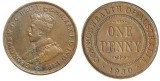 GEORGE V, 1921, Indian die. Double entered obverse legend, glossy brown, nearly uncirculated.