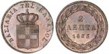 GREECE, Kingdom, copper two lepta, 1833 (KM.14). Red and brown, uncirculated and rare in this condition, one of the finest known.