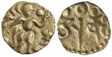 CEYLON (SRI LANKA), Native coinages, Period of the Chola Invasion, (c.990-1070), gold aka or eighth Kahavanu 10mm, (0.52 g), obv. Vishnu standing right, holding globe; ...