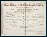 QUEENSLAND MINING, Kettle Swamp and Mount Marlay Tin, 1872 in words, five hundred Subscribers' £1 shares; Mount Chambers Gold, near Rockhampton, 18[90], sixty seven ...